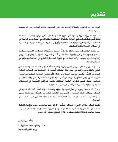 إن هذا الكتاب ،بما يحويه من معارف ومهارات وقيَم واتجاهات ،جاء ُمح ِّق ًقا لأهداف التعليم في