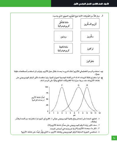 ج .تم استخراج ثلاثة أنزيمات P ،Q ،Rمن القناة الهضمية لحيوان المها .وتم استقصاء تأثير الرقم الهيدروجيني على