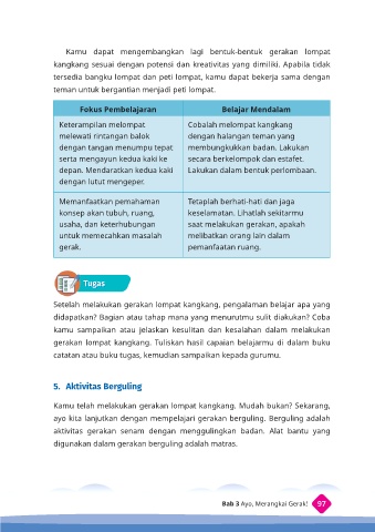 gerakan lompat kangkang. Tuliskan hasil capaian belajarmu di dalam buku