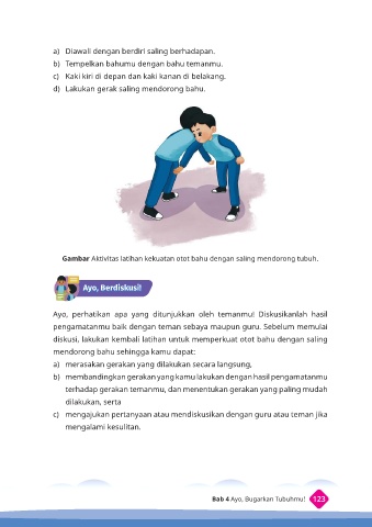 diskusi, lakukan kembali latihan untuk memperkuat otot bahu dengan saling
