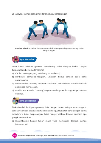 2) Aktivitas latihan saling mendorong bahu berpasangan