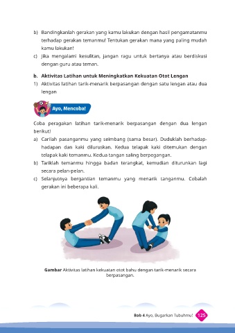 1) Aktivitas latihan tarik-menarik berpasangan dengan satu lengan atau dua