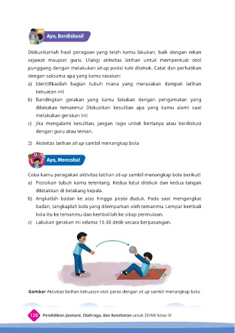 Coba kamu peragakan aktivitas latihan sit-up sambil menangkap bola berikut!