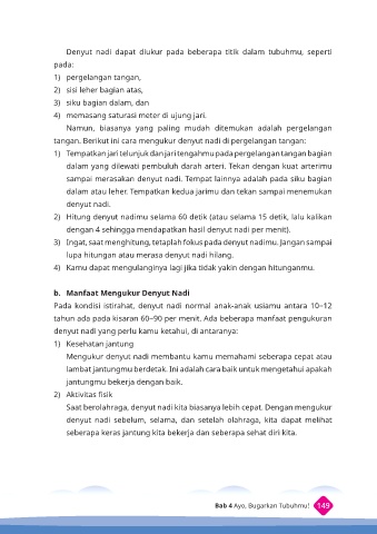 sampai merasakan denyut nadi. Tempat lainnya adalah pada siku bagian