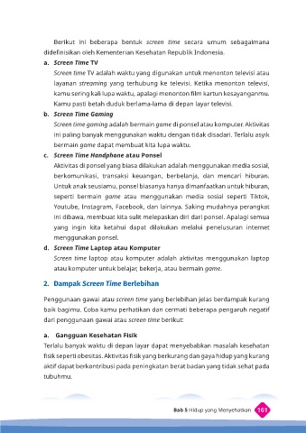 Berikut ini beberapa bentuk screen time            secara umum sebagaimana