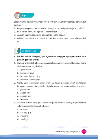 Setelah kamu belajar menangani cedera ringan, jawablah beberapa pertanyaan