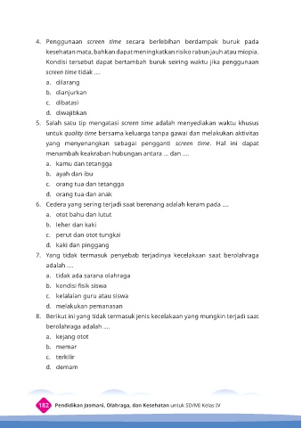 182 Pendidikan Jasmani, Olahraga, dan Kesehatan untuk SD/MI Kelas IV