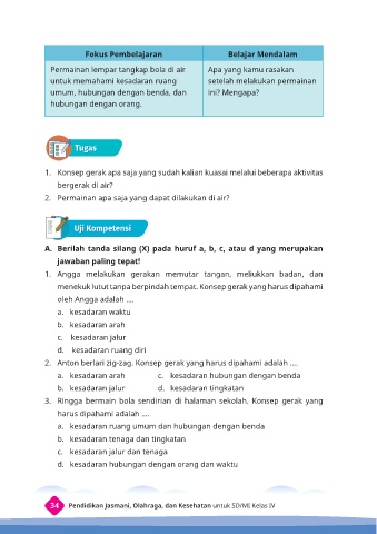 34 Pendidikan Jasmani, Olahraga, dan Kesehatan untuk SD/MI Kelas IV
