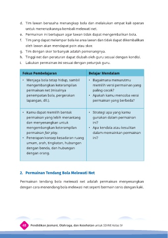 e. Permainan ini bertujuan agar lawan tidak dapat mengembalikan bola.