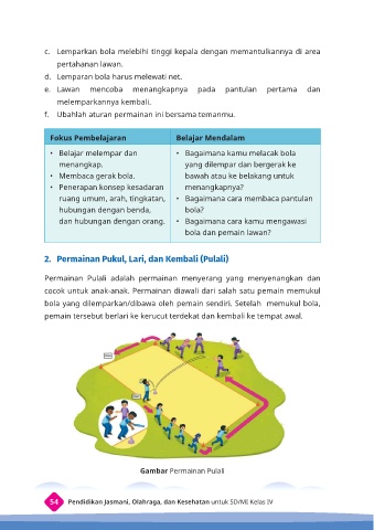 c. Lemparkan bola melebihi tinggi kepala dengan memantulkannya di area