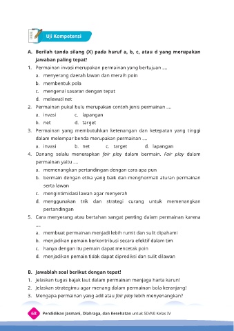 68 Pendidikan Jasmani, Olahraga, dan Kesehatan untuk SD/MI Kelas IV