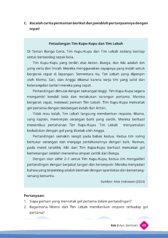 C. Bacalah cerita permainan berikut dan jawablah pertanyaannya dengan