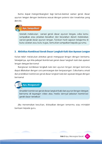 Selanjutnya, ayo kita pelajari kombinasi gerak dasar langkah kaki dan ayunan