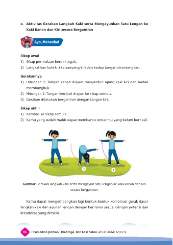 e. Aktivitas Gerakan Langkah Kaki serta Mengayunkan Satu Lengan ke