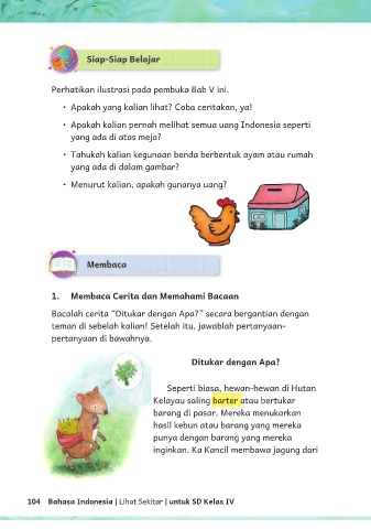 Bacalah cerita “Ditukar dengan Apa?” secara bergantian dengan