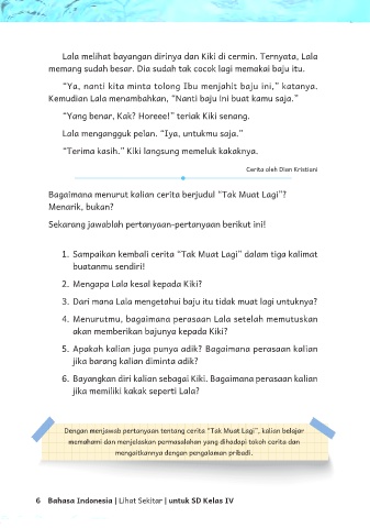 3. Dari mana Lala mengetahui baju itu tidak muat lagi untuknya?