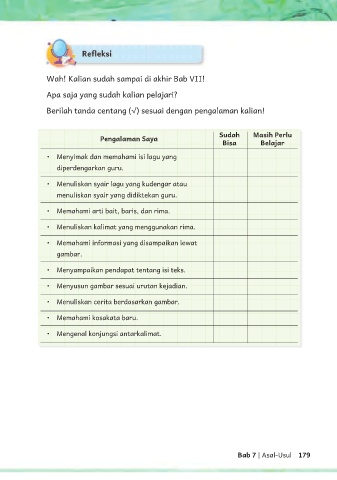 • Menuliskan kalimat yang menggunakan rima.