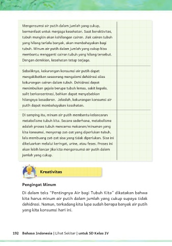 Di dalam teks “Pentingnya Air bagi Tubuh Kita” dikatakan bahwa