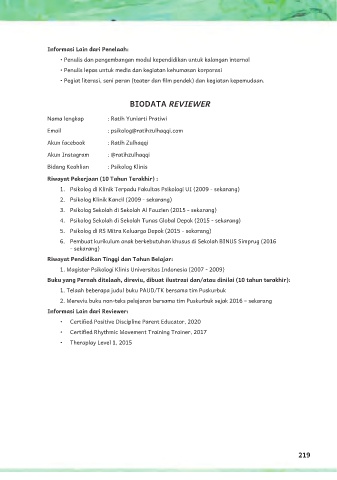 1. Psikolog di Klinik Terpadu Fakultas Psikologi UI (2009 - sekarang)