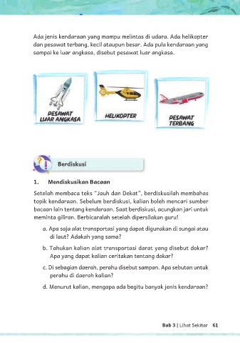 bacaan lain tentang kendaraan. Saat berdiskusi, acungkan jari untuk