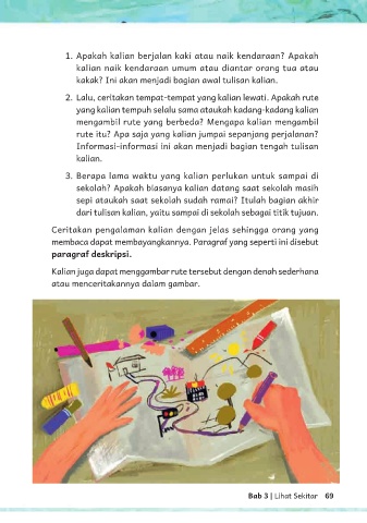 1. Apakah kalian berjalan kaki atau naik kendaraan? Apakah