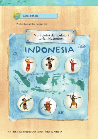 Perhatikan poster berikut ini. Mari cintai dan pelajari tarian Nusantara 84 Bahasa Indonesia | Lihat Sekitar | untuk SD Kelas IV