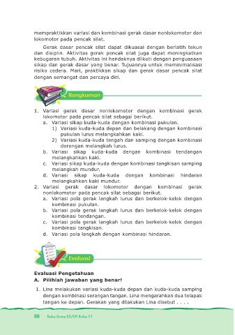 mempraktikkan variasi dan kombinasi gerak dasar nonlokomotor dan