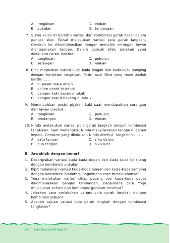 7. Siswa kelas VI berlatih variasi dan kombinasi gerak dasar dalam