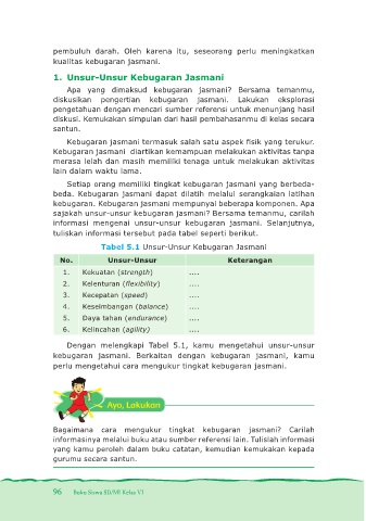 Tabel 5.1 Unsur-Unsur Kebugaran Jasmani