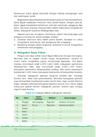 Tabel 5.2 Jadwal Latihan Kebugaran Jasmani