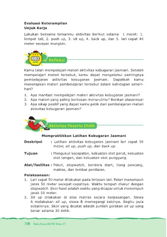 lompat tali, 2. push up, 3. sit up, 4. back up, dan 5. lari cepat 40
