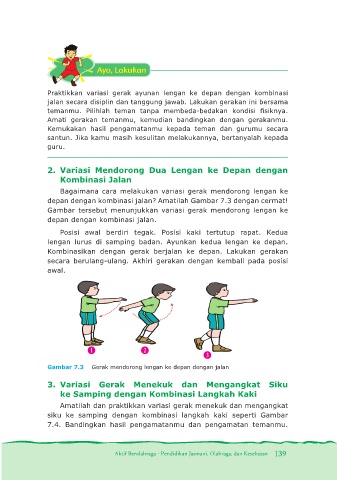 Praktikkan variasi gerak  ayunan lengan ke depan dengan kombinasi