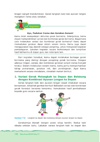 Gambar 7.6   Langkah ke depan dan belakang dengan ayunan lengan ke depan