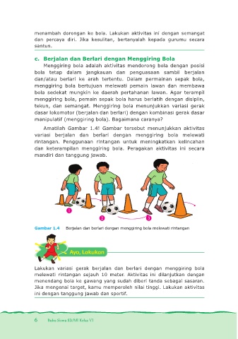 Gambar 1.4 Berjalan dan berlari dengan menggiring bola melewati rintangan
