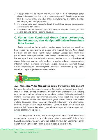 2. Setiap anggota kelompok melakukan variasi dan kombinasi gerak