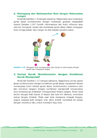 Gambar 1.16 Mengoper bola menggunakan satu tangan di atas kepala dengan
