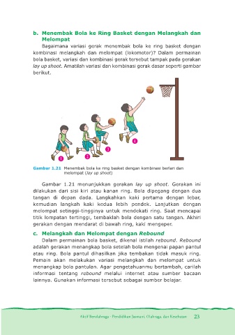 Gambar 1.21 menunjukkan gerakan lay up shoot. Gerakan ini