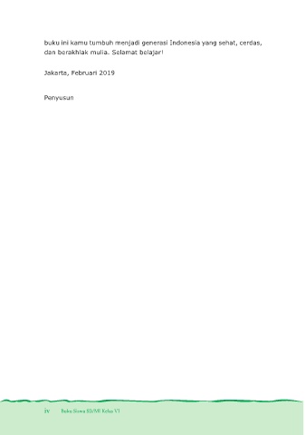 buku ini kamu tumbuh menjadi generasi Indonesia yang sehat, cerdas, dan berakhlak mulia. Selamat belajar! Jakarta, Februari 2019 Penyusun iv Buku Siswa SD/MI Kelas VI