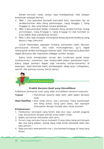 lapangan. Saat bermain kasti, kembangkan sikap jujur (integritas),