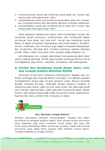 2. mendeskripsikan variasi dan kombinasi gerak dasar lari, lompat, dan