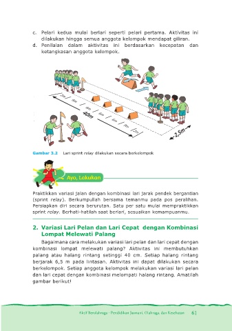 c. Pelari kedua mulai berlari seperti pelari pertama. Aktivitas ini