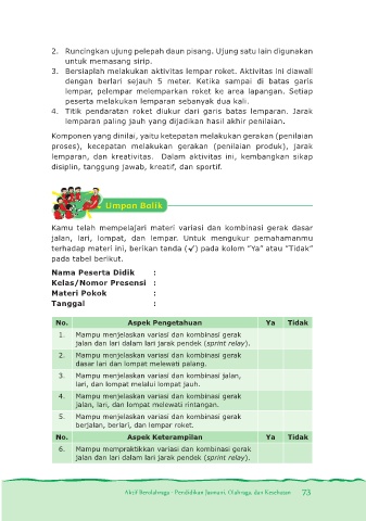 lemparan, dan kreativitas. Dalam aktivitas ini, kembangkan sikap