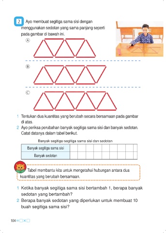 2 Ayo periksa perubahan banyak segitiga sama sisi dan banyak sedotan.
