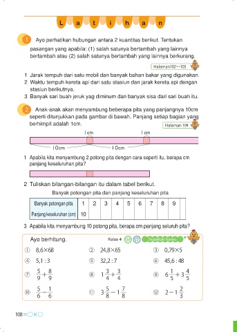 3 Apabila kita menyambung 10 potong pita, berapa cm panjang seluruh pita?