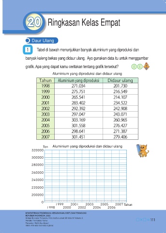 1     Tabel di bawah menunjukkan banyak aluminium yang diproduksi dan