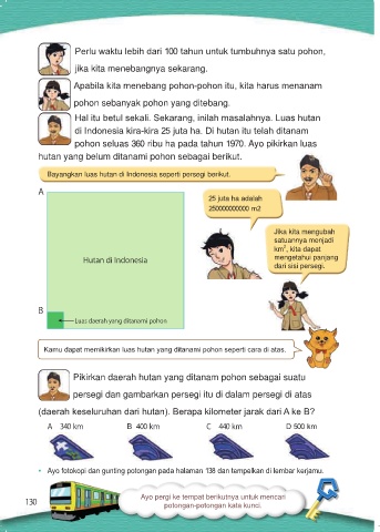 Kamu dapat memikirkan luas hutan yang ditanami pohon seperti cara di atas.