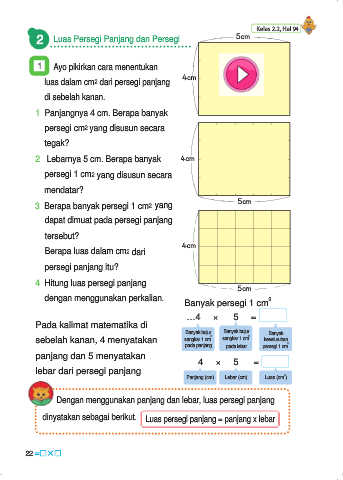 dengan menggunakan perkalian. Banyak persegi 1 cm 2