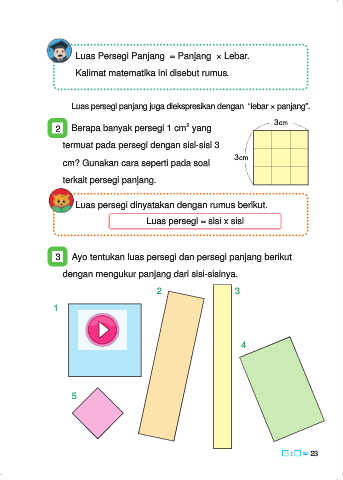 Ayo tentukan luas persegi dan persegi panjang berikut