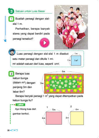 satu meter persegi dan ditulis 1 m2.