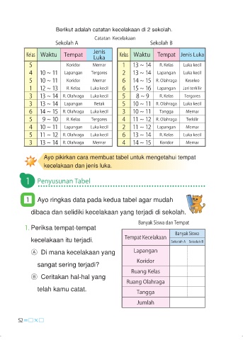 Ayo pikirkan cara membuat tabel untuk mengetahui tempat